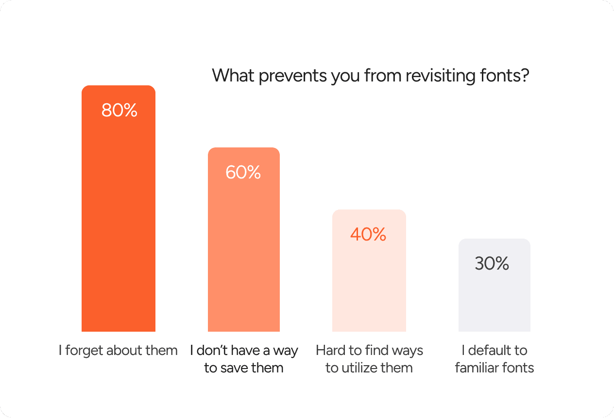 Designers often lose track of fonts they like due to poor organization and lack of easy ways to save or recall them, causing inspiration to fade before it can be reused.