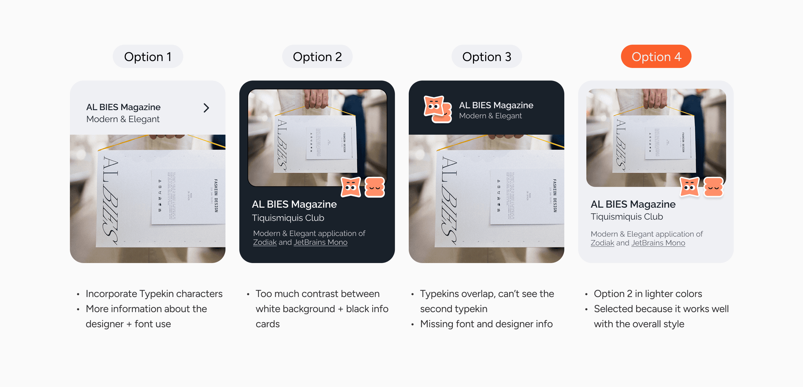 Browse fonts through cards and Typekin-based filters