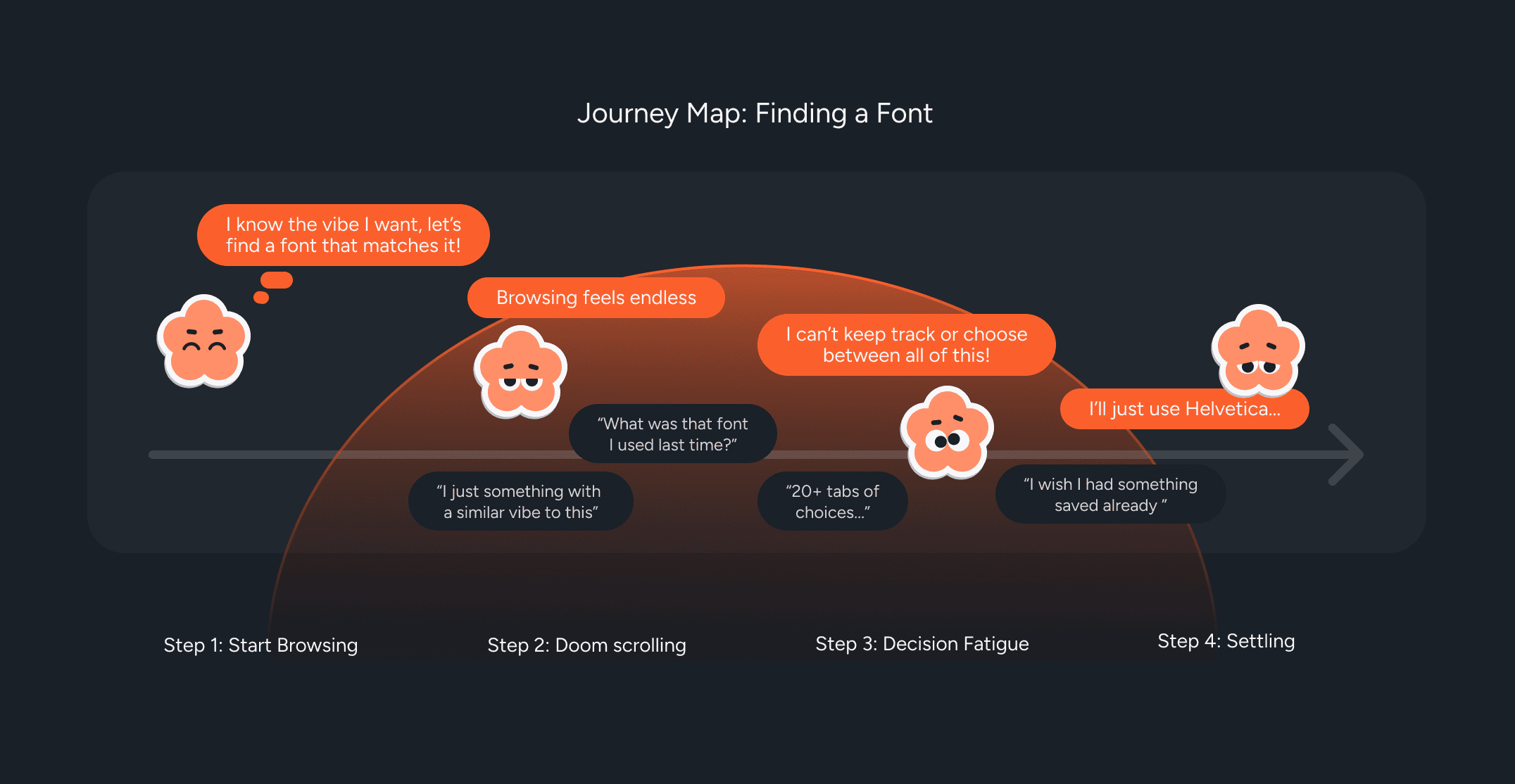 How might a font browsing experience help designers build personal taste and rediscover inspiration, rather than repeatedly defaulting to familiar typefaces?