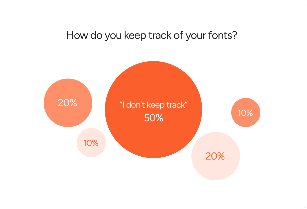 Font tracking is largely unstructured, with many designers not saving fonts at all and others relying on scattered methods like screenshots or bookmarks.